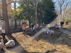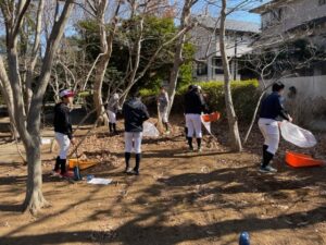陽春2月のポカポカと春の到来を感じる天候の中での定期清掃となり、八千代ボーイズの20名の参加者は皆元気よく、明るく園内清掃作業に励んでいました。