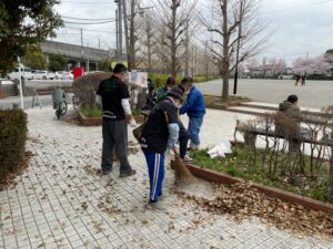 お知らせ 友愛みどり園の皆様との協働清掃作業報告 2022年3月31日 3月30日(水)10:45~11:45友愛みどり園の皆様(参加者4名)が地域貢献の為の活動として、スポーツの杜公園にて、清掃活動を行いました。 公園の入り口、多目的グランド・駐車場周辺などを綺麗に清掃しました。
