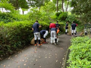 6月11日(土)10:00~11:30村上緑地公園にて、八千代ボーイズの皆様(参加者23名)が園内の定期清掃作業を行いました。