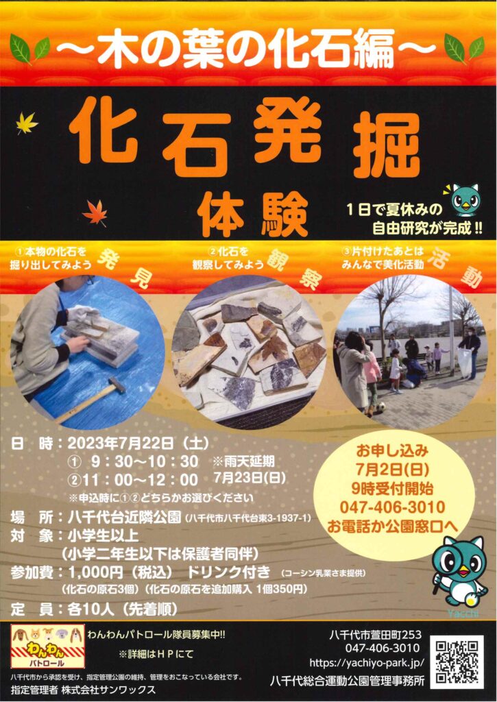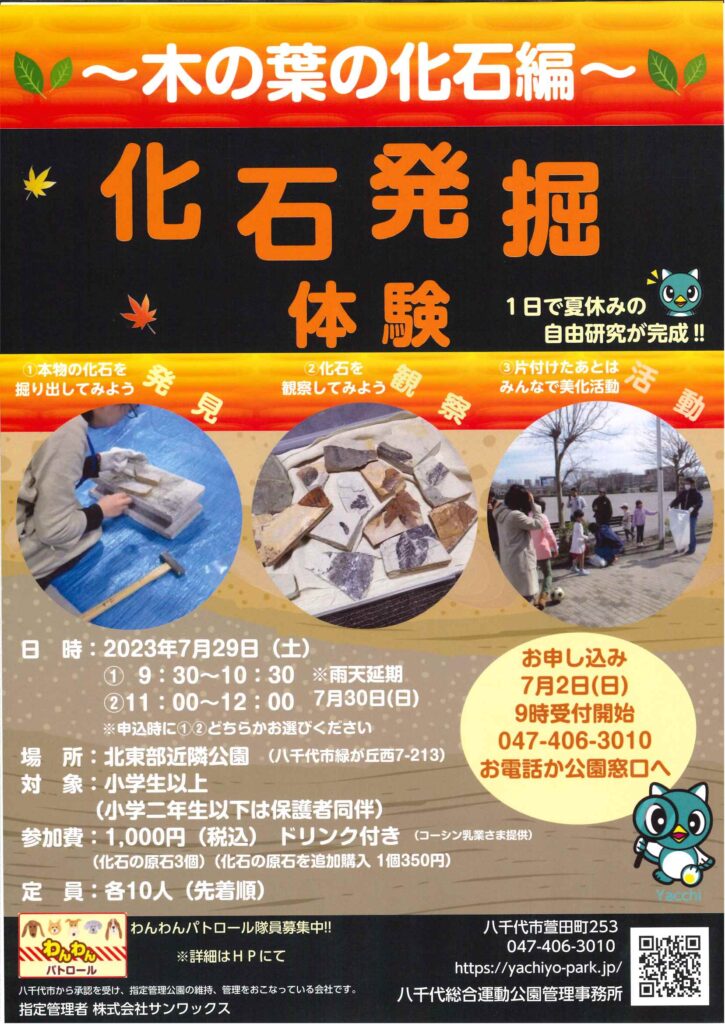 7月22日(土)八千代台近隣公園化石発掘体験後、12:00~14:00