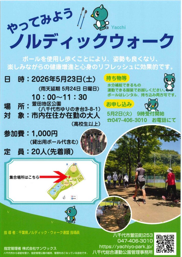 NEW! お知らせ 【ノルディックウォーク開催のお知らせ】 2026年4月19日 ポールを使用し歩くことにより、姿勢も良くなり、楽しみながらの健康増進と心身のリフレッシュに効果的です 指導者は、千葉県ノルディック・ウォーク...